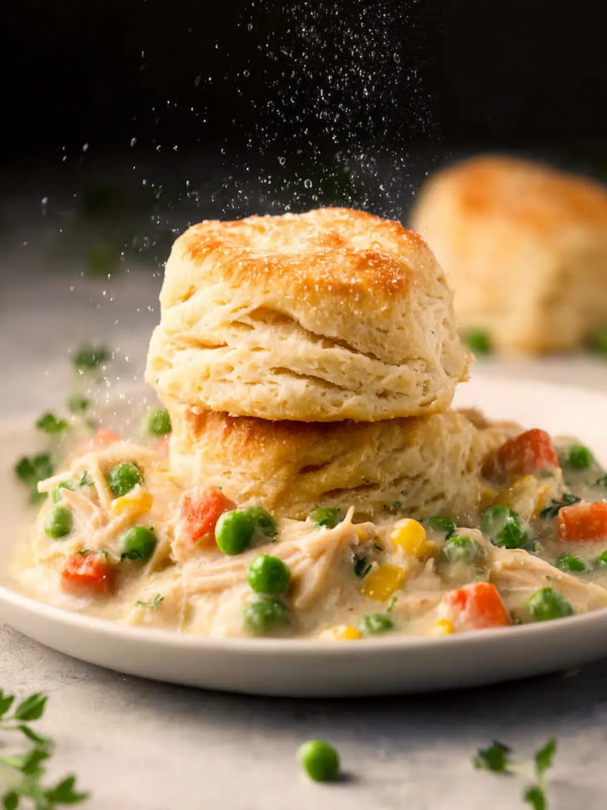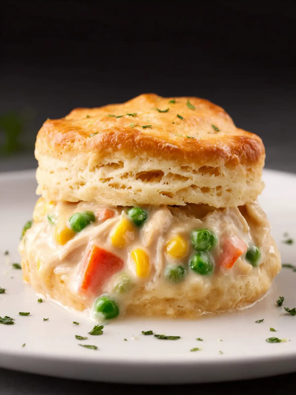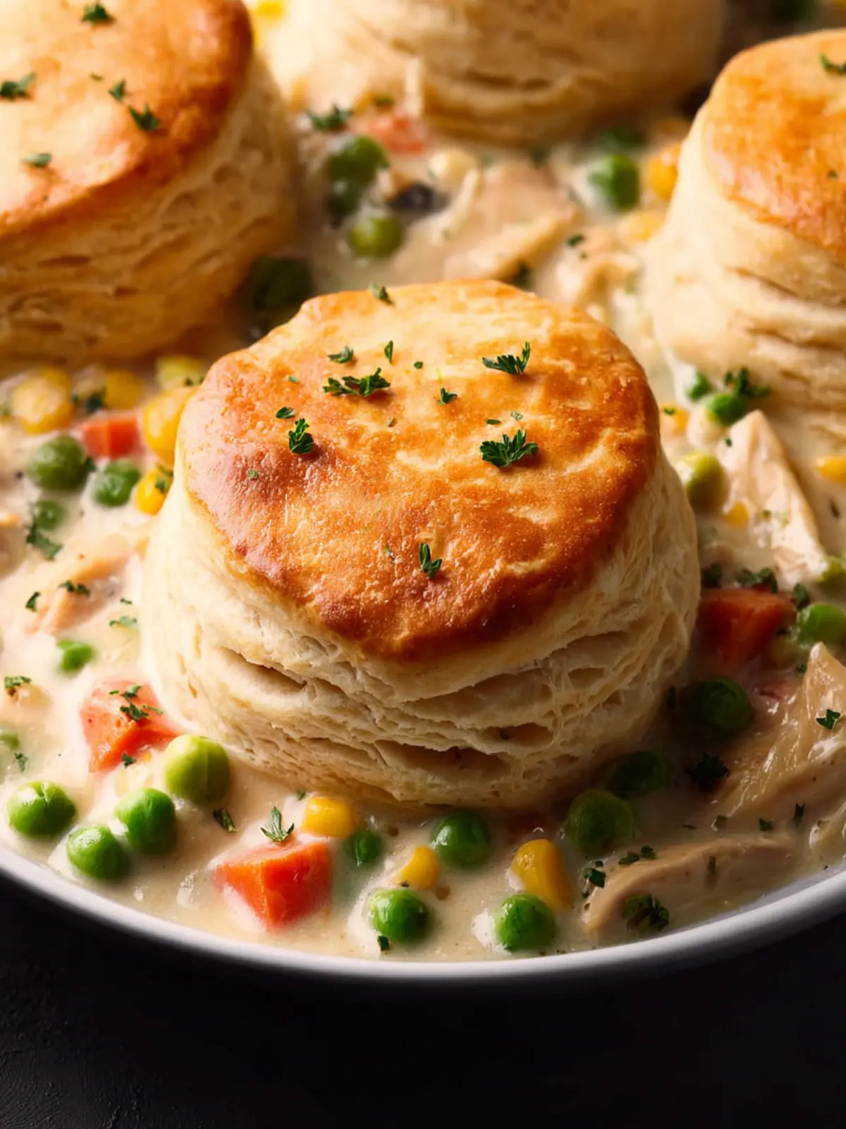 • Herb Garnish: Enhance presentation and flavor with freshly chopped herbs, like parsley or thyme, sprinkled on top of the chicken pot pie biscuits.