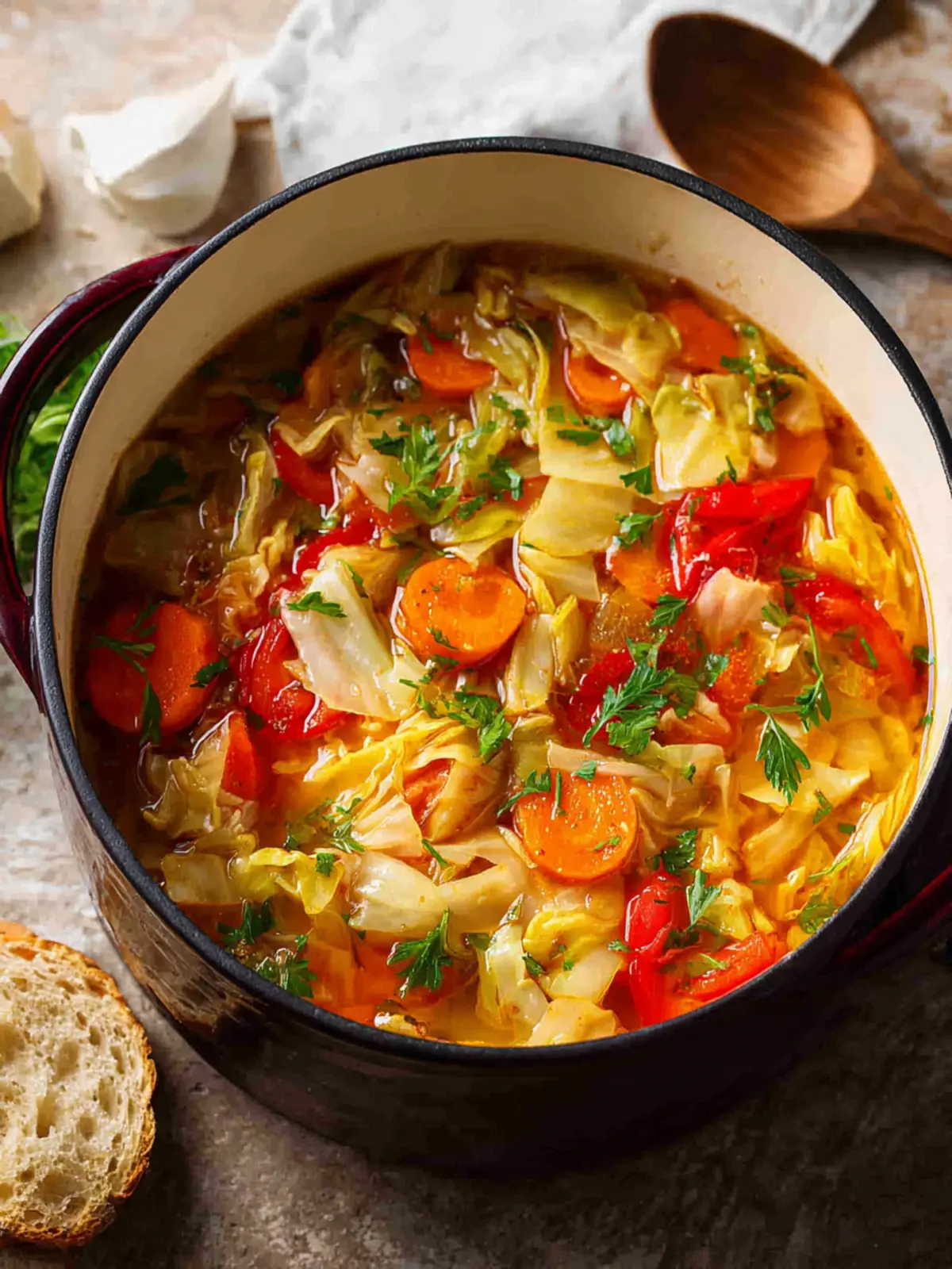 Bread: Serve your cabbage soup with crusty bread or toasted baguette slices for a satisfying crunch. A slice of sourdough or whole grain bread can make each meal feel more filling and indulgent.